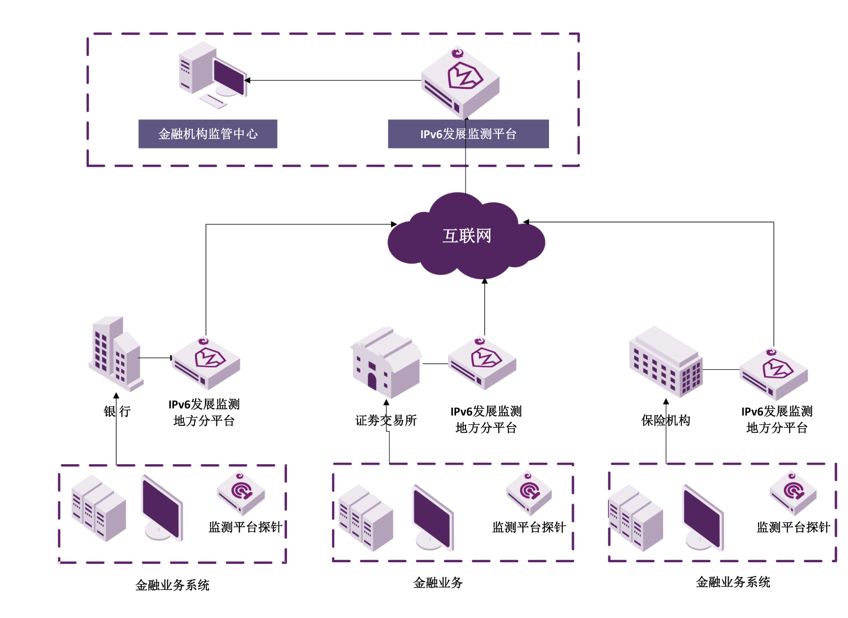 依据人民银行发布的的IPv6整改通知和工信部IPv6规模部署推进专家委发布的相关技术指标,并通过对当前互联网各层面充分调研,为人民银行各省市主管部门提供当地银行、证券、保险等金融行业IPv6规模部署建设监督考核指标体系,引导IPv6部署工作规范落实和有序发展。平台可解决:(1)对金融行业IPv6互联网全产业资源进行发展实时监测;(2)支持个性化分析报表展现和评估报告导出;(3)平台操作界面友好,部署简便。