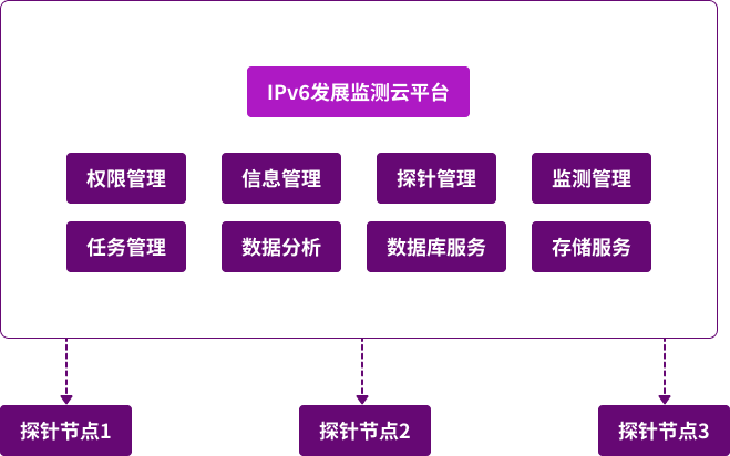 和中科技IPv6发展监测系统是一款面向IPv6网络的运维管理和状态监测产品,用于实时监测网络中的IPv6部署进度、流量分布及设备兼容性,生成可视化报告,帮助企业评估IPv6升级效果并优化资源配置。本系统平台软件的后台采用SpringCloud微服务架构,前端采用Vue架构,支持公有云或私有云分布式部署。