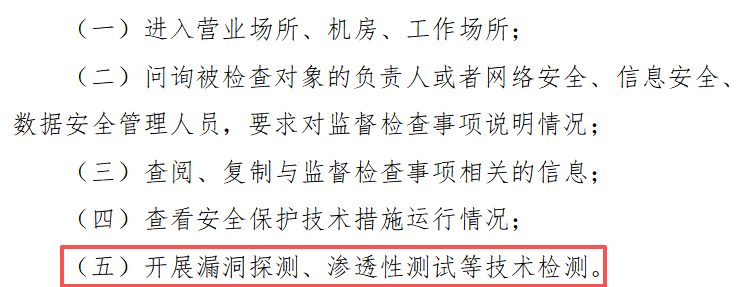 并且在现场检测中还添加了漏洞探测、渗透性测试等技术检测,明确了“光说不练”行不通了。
