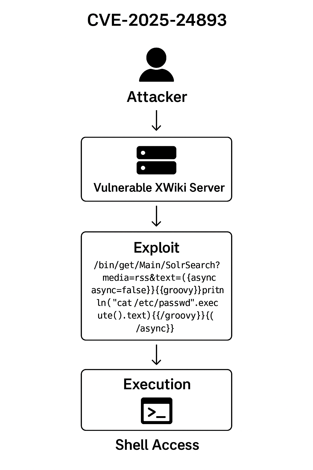 攻击者无需认证即可访问 XWiki 的SolrSearch 接口。通过向接口参数注入恶意Groovy 代码,触发服务器端执行任意系统命令。成功执行后,攻击者能够在服务器上直接操作系统或部署持久化控制手段。该漏洞可导致对整个XWiki 实例的完全控制,严重威胁系统安全。