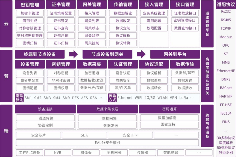 在智慧灯杆、环境监测、智能楼宇等大规模物联网场景,网关为海量、异构的传感设备提供轻量级的证书管理和加密传输能力。
