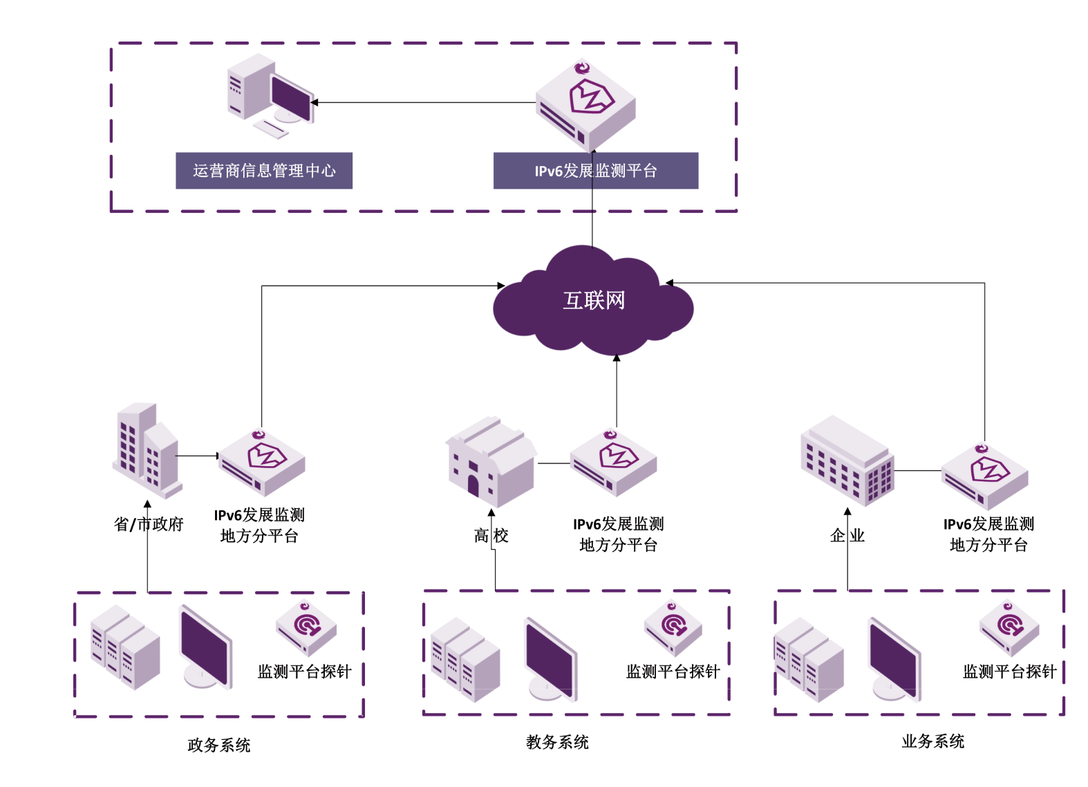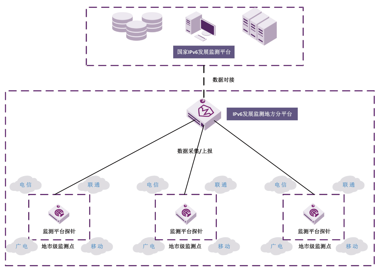 和中科技IPv6发展监测系统是一款面向IPv6网络的运维管理和状态监测产品,用于实时监测网络中的IPv6部署进度、流量分布及设备兼容性,生成可视化报告,帮助企业评估IPv6升级效果并优化资源配置。本系统平台软件的后台采用SpringCloud微服务架构,前端采用Vue架构,支持公有云或私有云分布式部署。