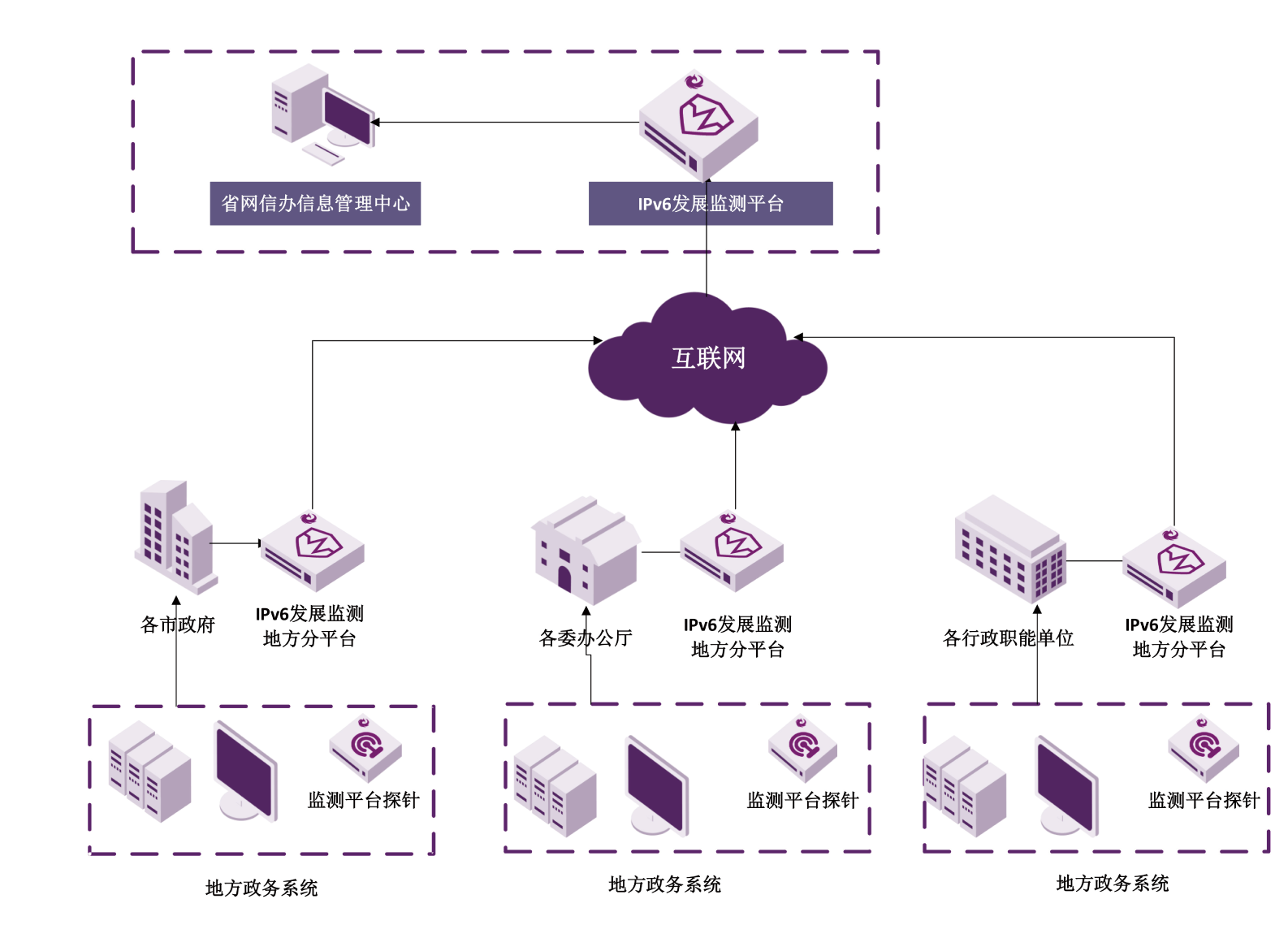各省网信办建设IPv6发展监测平台为政府主管部门提供强有力的监督考核数字量化支撑。通过对全省各区市县政府门户网站及政务服务网站、办公系统等进行IPv6发展进行监测并提供监测报告予区级主管部门,引导IPv6部署工作规范落实和有序发展。平台可解决:(1)对政府及职能单位IPv6互联网全产业资源进行发展实时监测;(2)支持个性化分析报表展现和评估报告导出;(3)平台操作界面友好,部署简便。