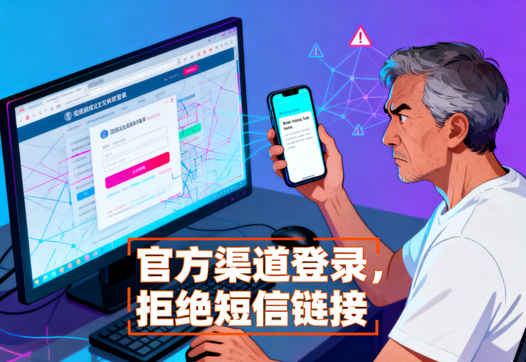 短信钓鱼:以“订单异常”“账户冻结”“缴费提醒”为由,诱导用户输入账号。
