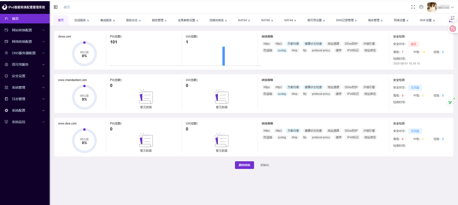 和中九凤系列是 IPv6 升级安全解决方案核心产品体系,包含五大核心产品:IPv6 智能转换升级系统(采用智能感知技术与双层转换机制,无需改造架构、一键接入,实现 IPv4/IPv6 双栈互通与端到端平滑升级,保障业务连续安全)、IPv6 发展监测系统(为监管部门提供网站 IPv6 改造进度、质量、支持度、部署率等检测评估服务,配备数据分析与可视化界面)、IPv6 日志溯源系统(采集 IPv4-IPv6 协议转换全量会话日志,实现网络行为精准追溯,覆盖 “日志采集 - 集中存储 - 价值延伸” 全流程)、IPV6-DDI 系统(融合 DNS、DHCP、IPAM 三大核心功能,基于定制化硬件平台与分布式架构,提供域名调度、安全防护、双栈地址分配等能力,适配专网建设、灾备系统搭建等多场景)、SD-WAN 云枢系统(动态感知网络边缘层各类活动,通过智能路径选路、加密传输等技术优化网络性能与通信安全,构建 “动态云网协同” 的广域网络服务体系),整体实现 IPv4/IPv6 双栈互通、升级进度可视、攻击链路追溯与广域网络优化,为能源、政务等企业提供 IPv6 合规改造与安全防护全场景支撑。