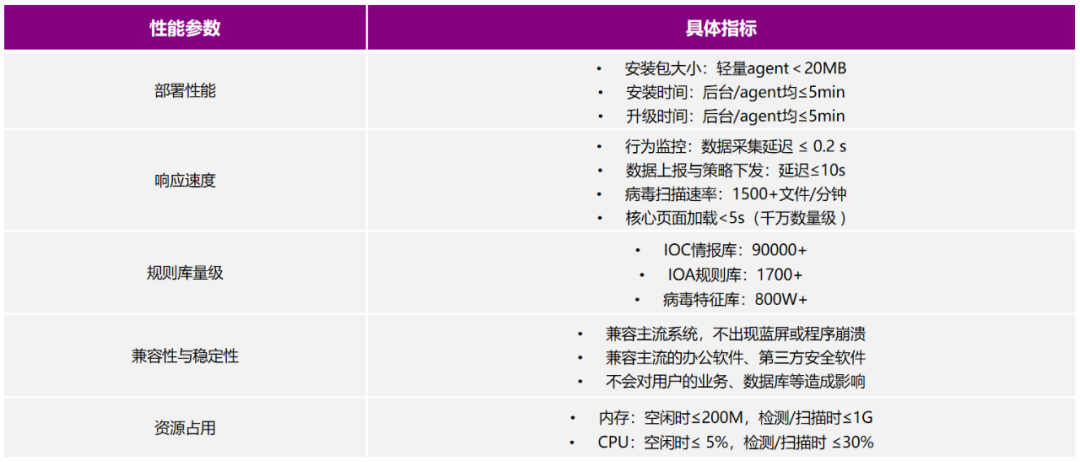 和中神雕终端威胁监测与响应系统的基本性能参数如下: