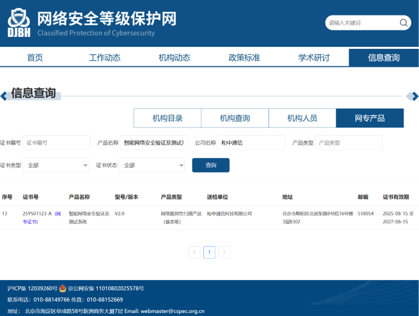 同时,本次认证结果已通过网络安全专用产品安全检测服务平台完成同步公布与更新,方便政企采购方随时查询与选用。