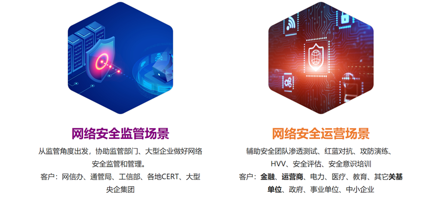 和中战鹰主要面向网络安全监管场景和网络安全运营场景,为客户提供安全监测和安全评估服务。
