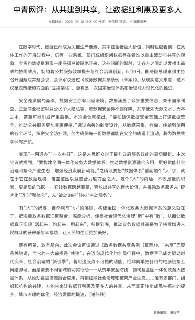 中青网评:从共建到共享,让数据红利惠及更多人!