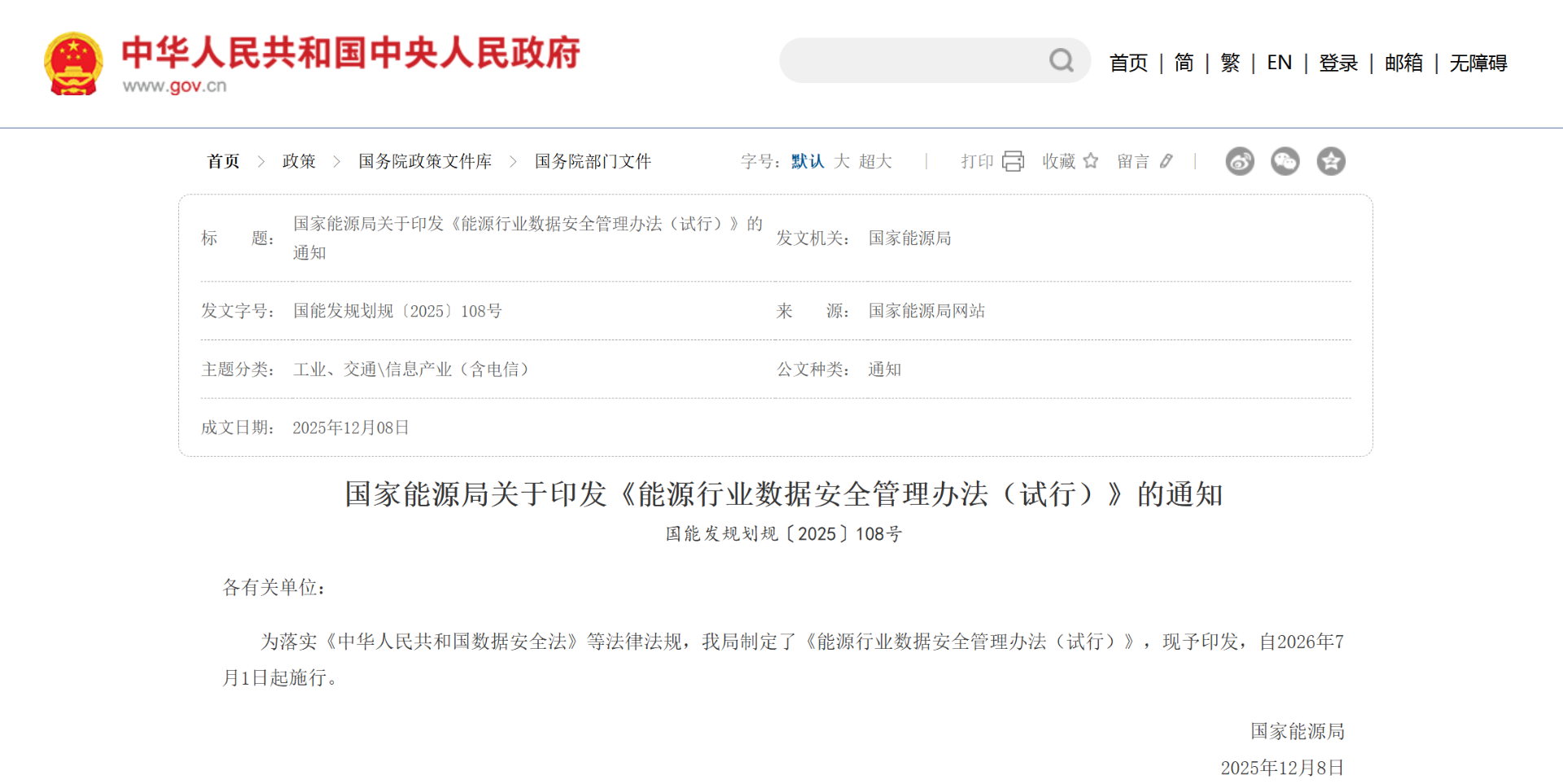 作为深耕通信与关键信息基础设施安全领域的科技企业,和中通信科技始终聚焦能源行业数字化转型中的数据安全痛点。2025年12月国家能源局《能源行业数据安全管理办法(试行)》(以下简称《办法》)正式印发,为能源行业数据安全治理划定清晰准则,也为行业安全发展指明方向。我们第一时间深度研读政策内核,结合能源行业数据安全实践需求,打造全流程、全维度的合规安全解决方案,以技术实力助力能源企业紧跟政策步伐,守护数据安全生命线。
