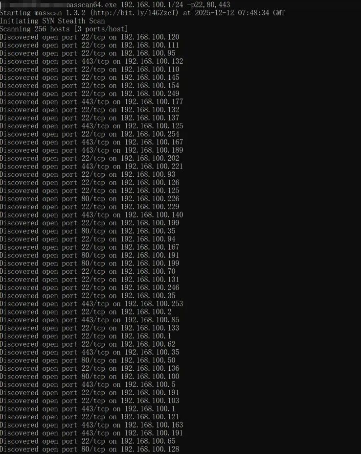masscan 192.168.100.1/24 -p22,80,443